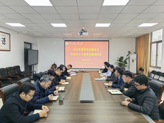 集体廉政谈话中,孙琳指出召开科级以上干部集体廉政谈话,既是落实学校2025年党风党纪教育月的要求,也是结合学院工作实际,对“关键少数”开展的精准提醒。她强调:一是要把“讲政治”作为根本准则,筑牢思想“防火墙”,不断深化理论武装,强化政治自觉,增强纪律意识;二是要把“守规矩”作为行为底线,织密用权“防护网”,坚持秉公用权,主动排查风险点,自觉接受师生监督;三是要把“强担当”作为履职关键,争当廉洁“排头兵”,认真履行“一岗双责”,以实干实效护航学院高质量发展。